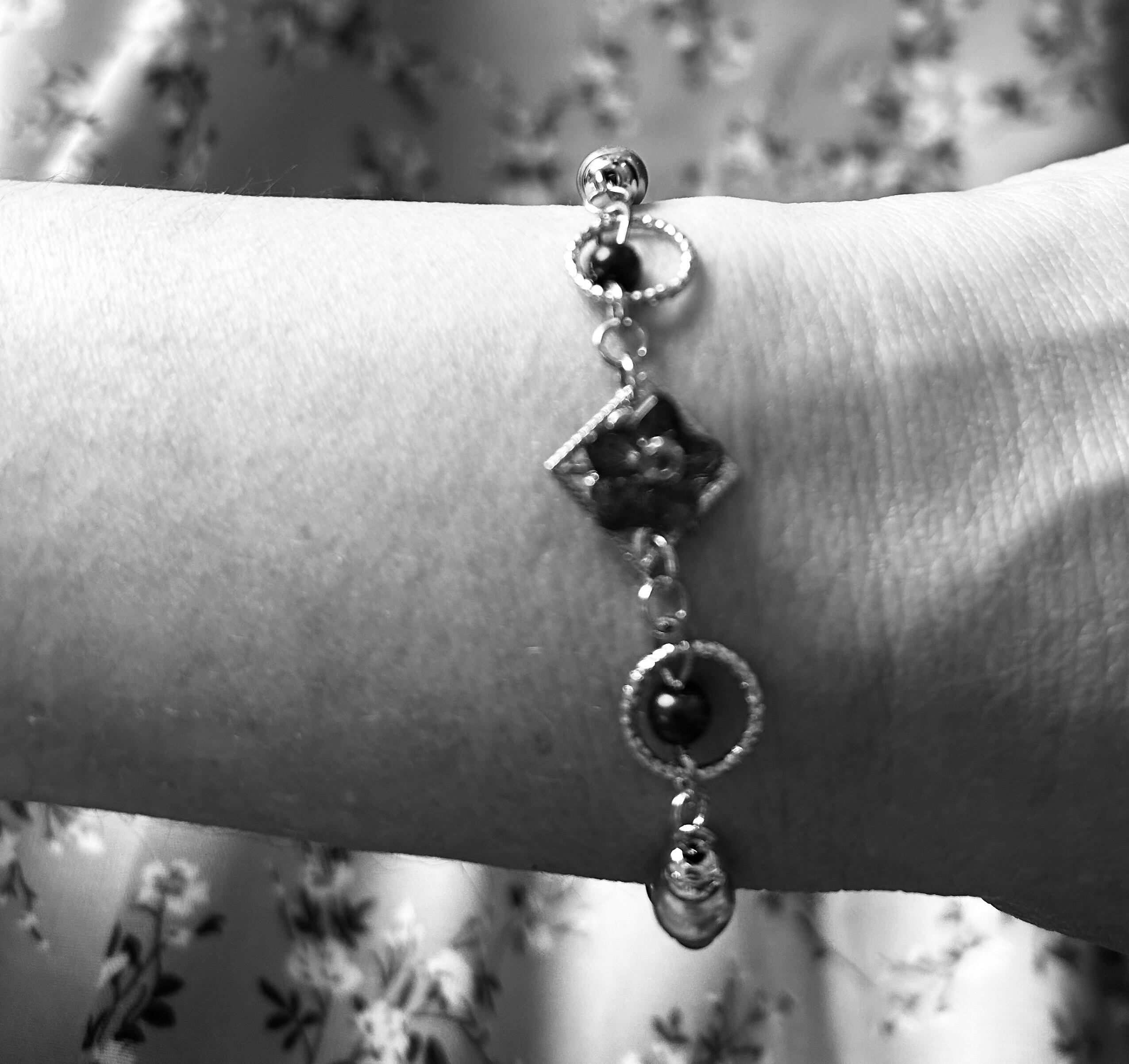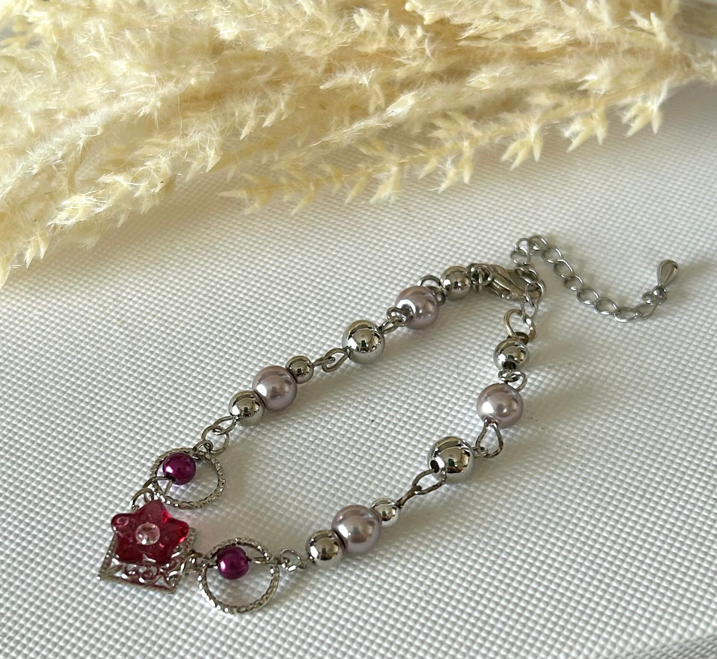 透明感のあるチェコビーズのお花を真ん中に可愛く飾ったブレスレットです♪