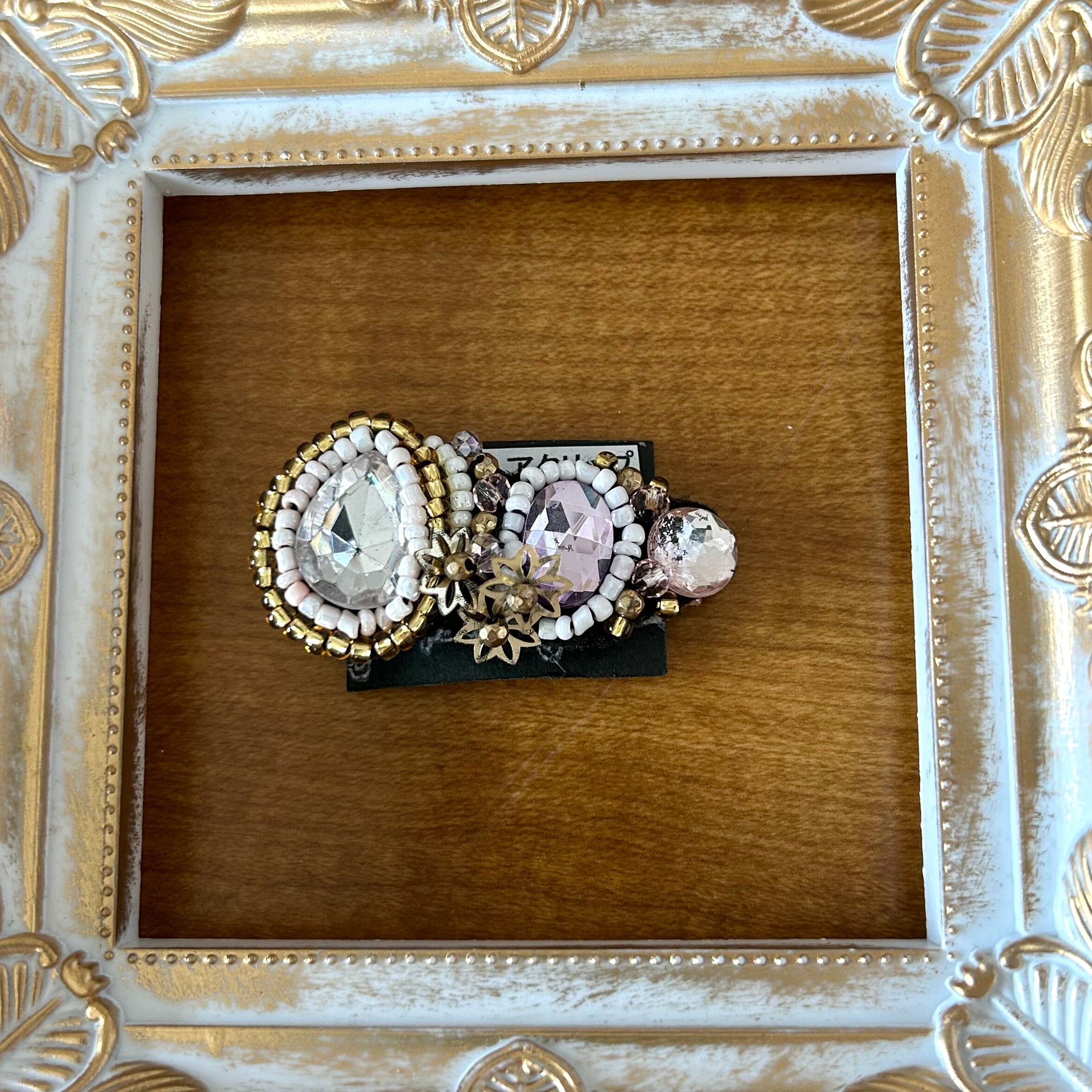 上品なベビーピンクと静かに光るしずくがアンティークで大人っぽいクリップです。
