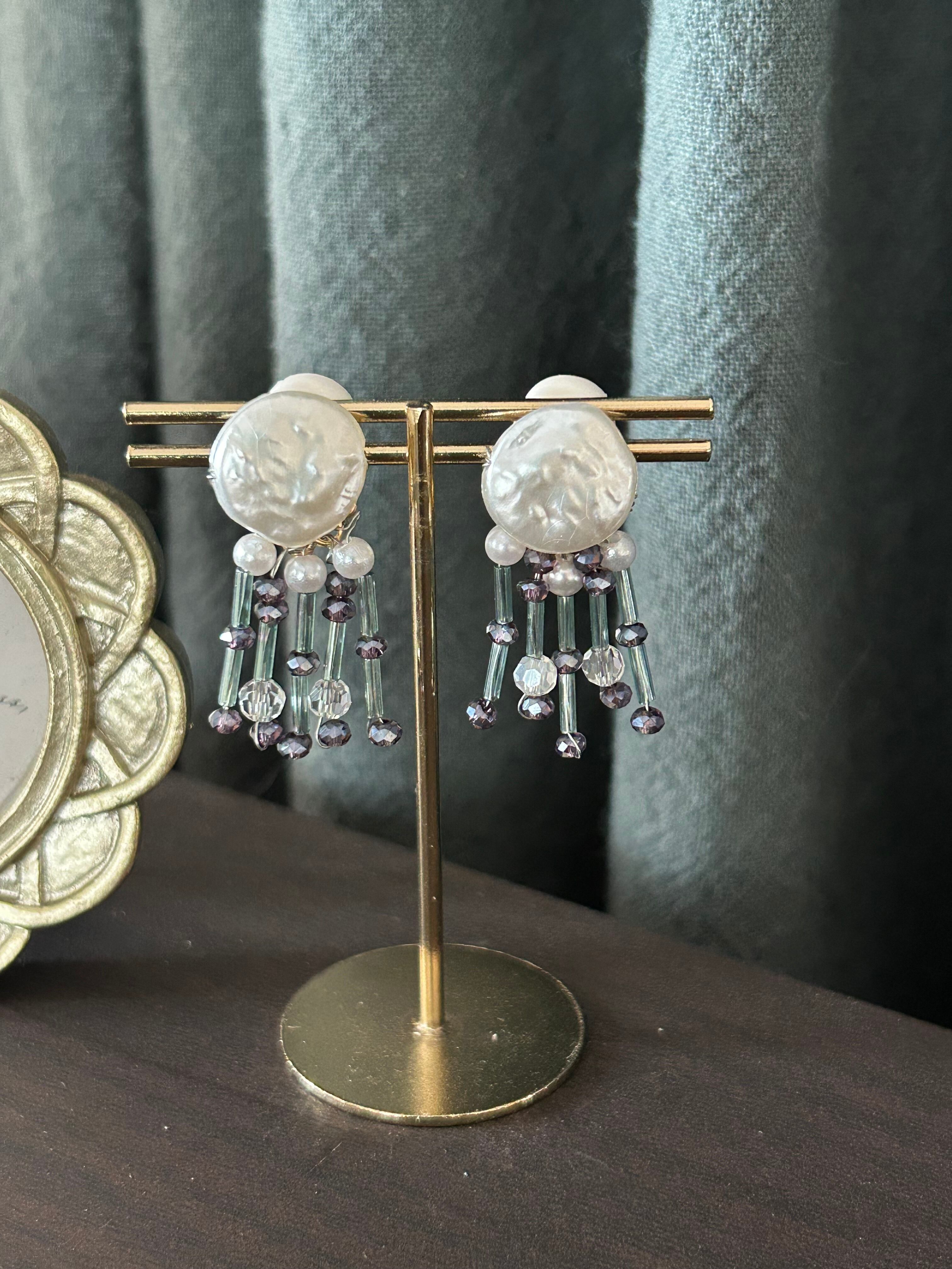 パールの上品さとくらげの様なデザインが共存する個性的なピアスです。