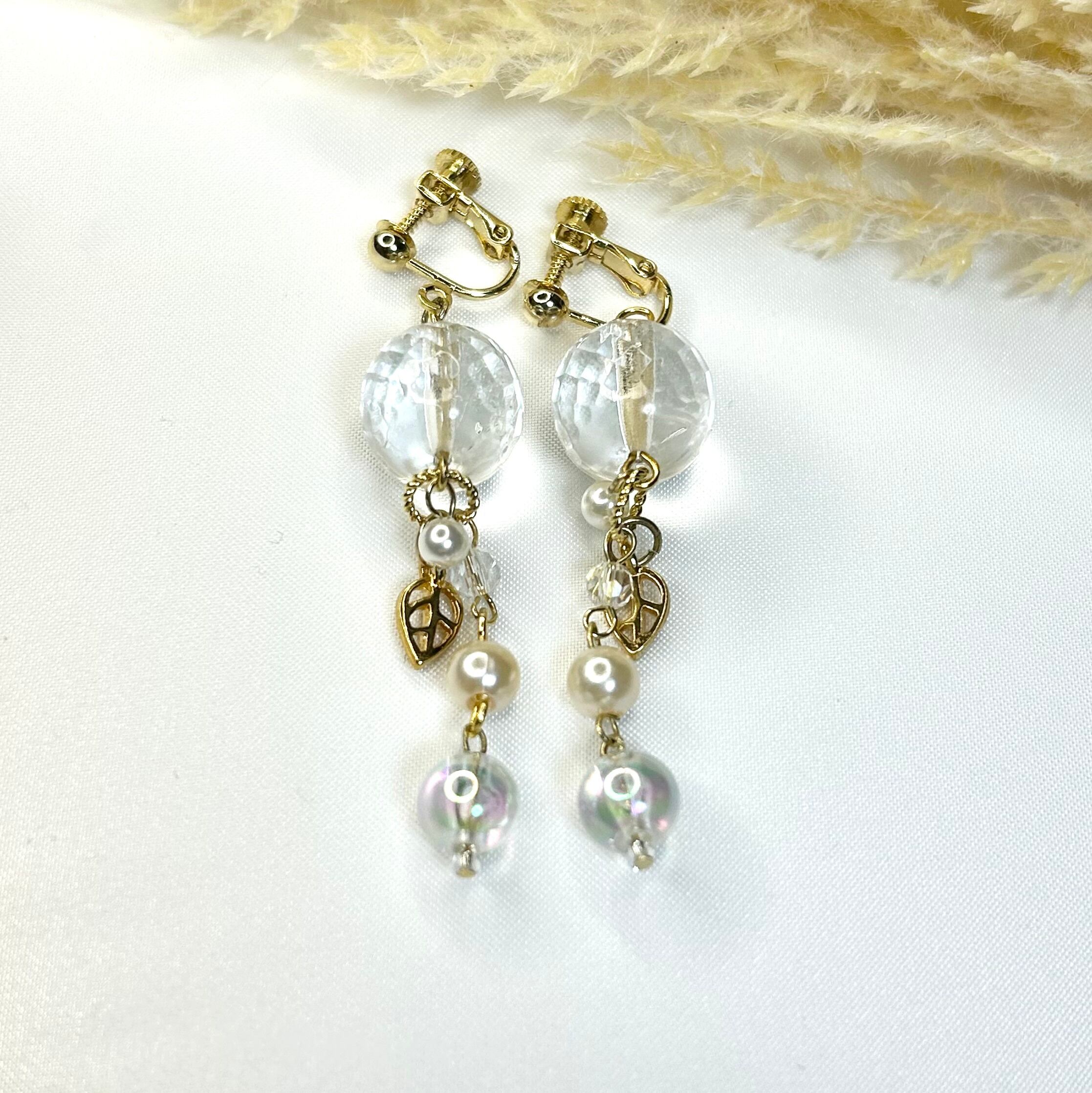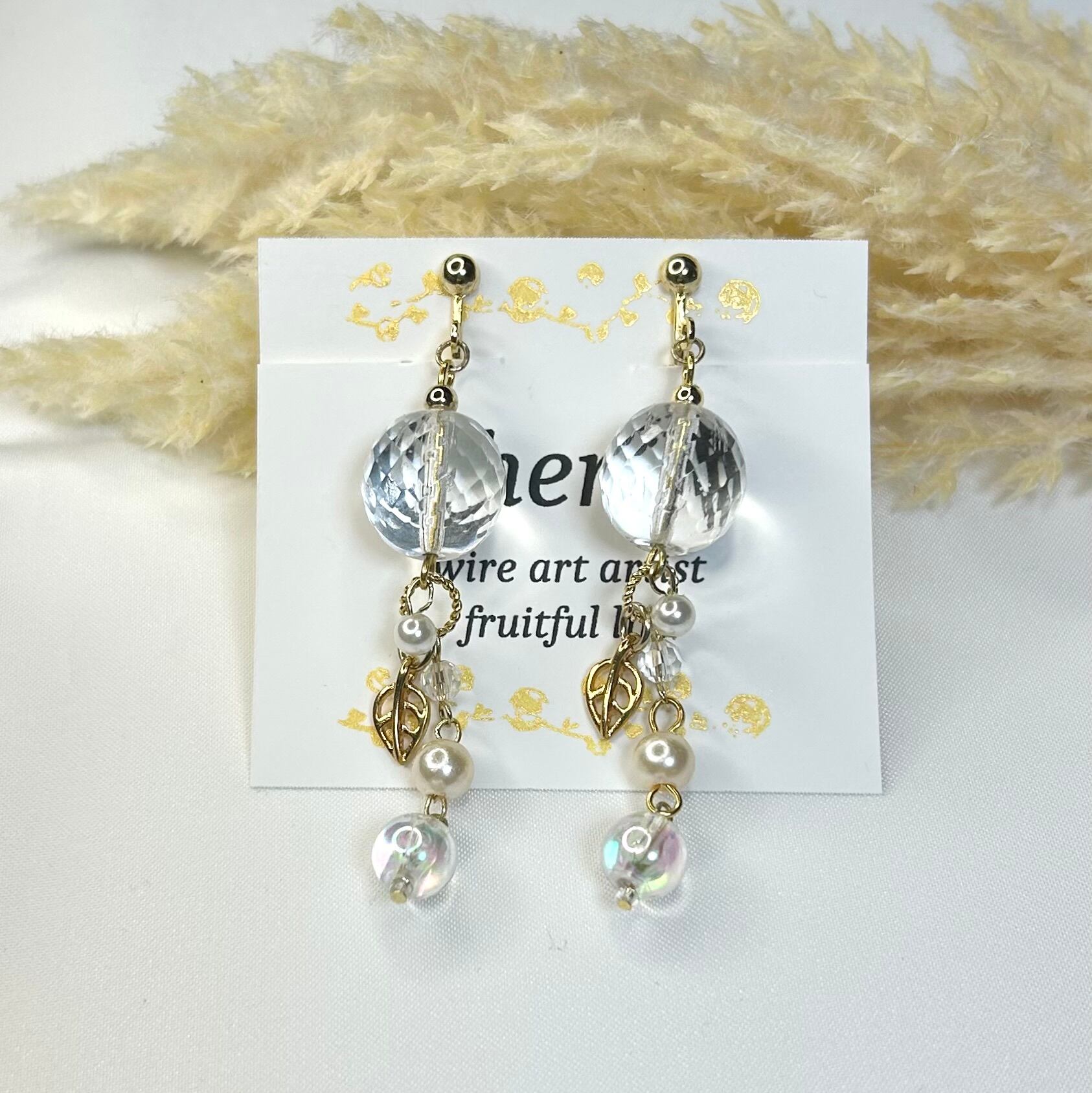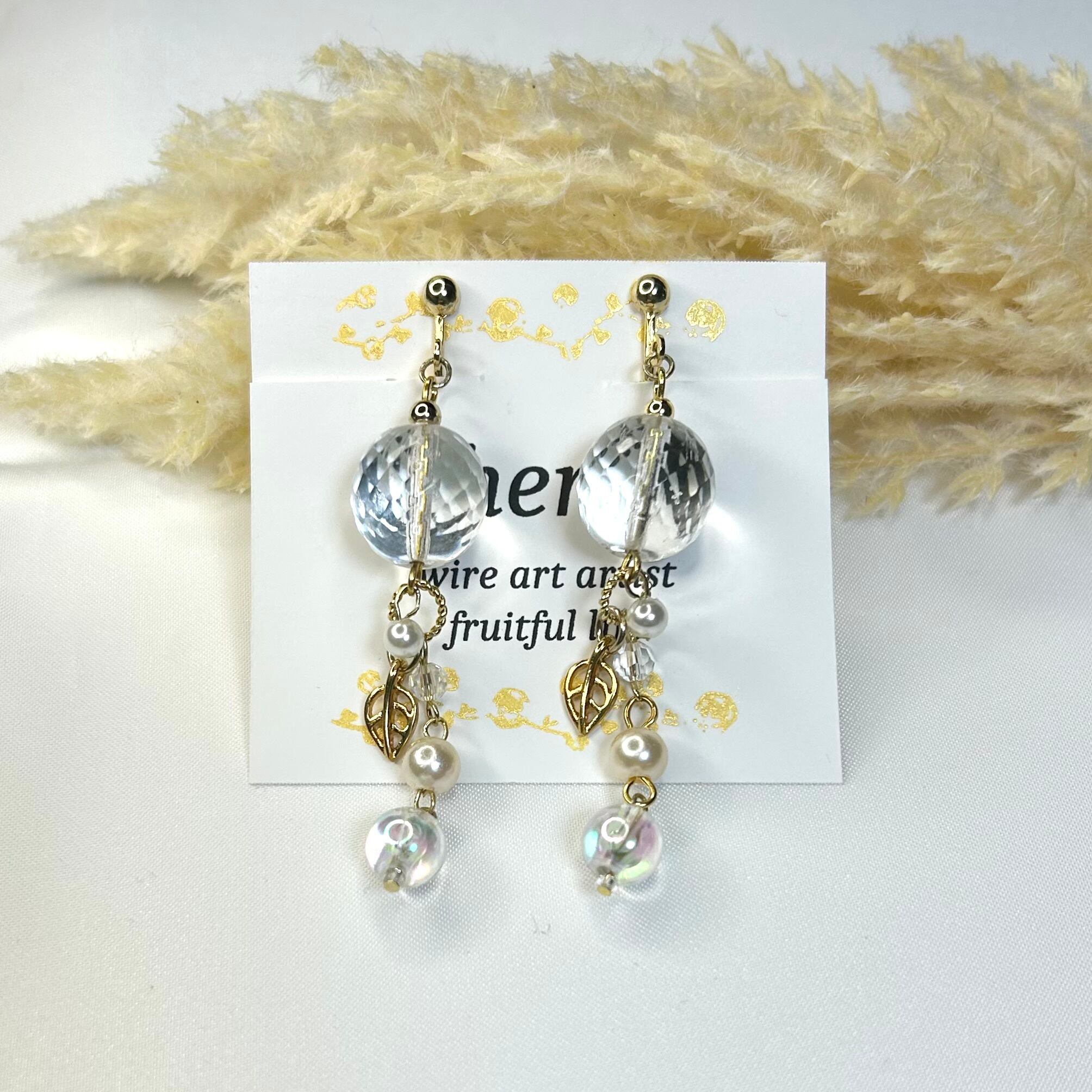 パールや虹色ビーズを軽めにぶら下げて清楚な雰囲気になりました。