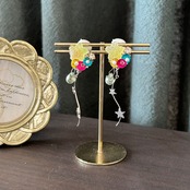そして透明感のあるしずくビーズをぶら下げた可愛らしいイヤリングです。