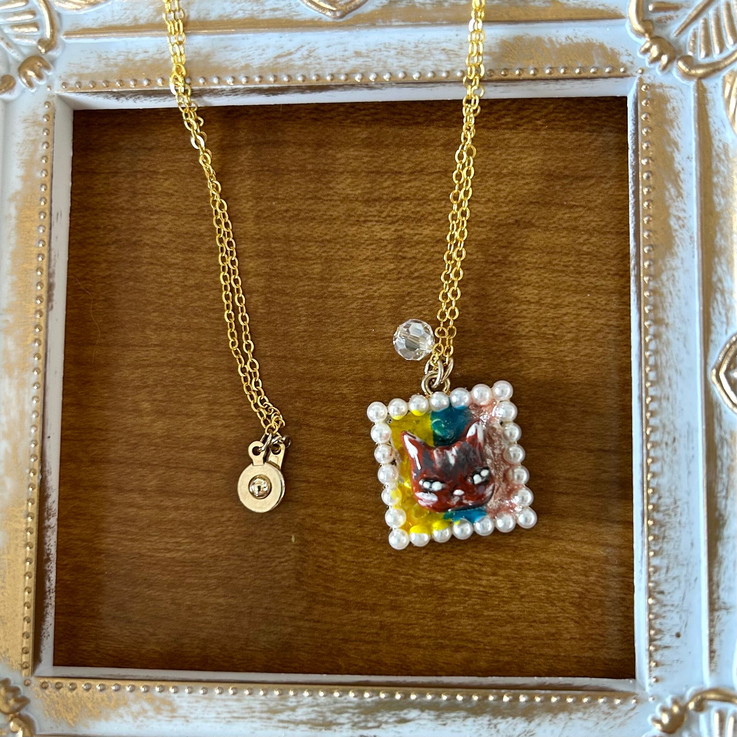 四角いモチーフに変な顔のにゃんこがこんにちは!