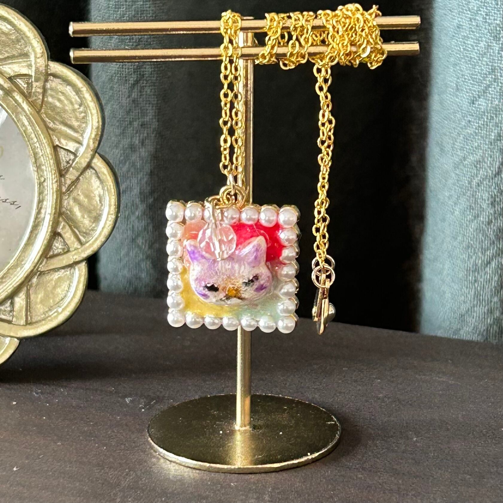 四角いモチーフに変な顔のにゃんこがこんにちは!