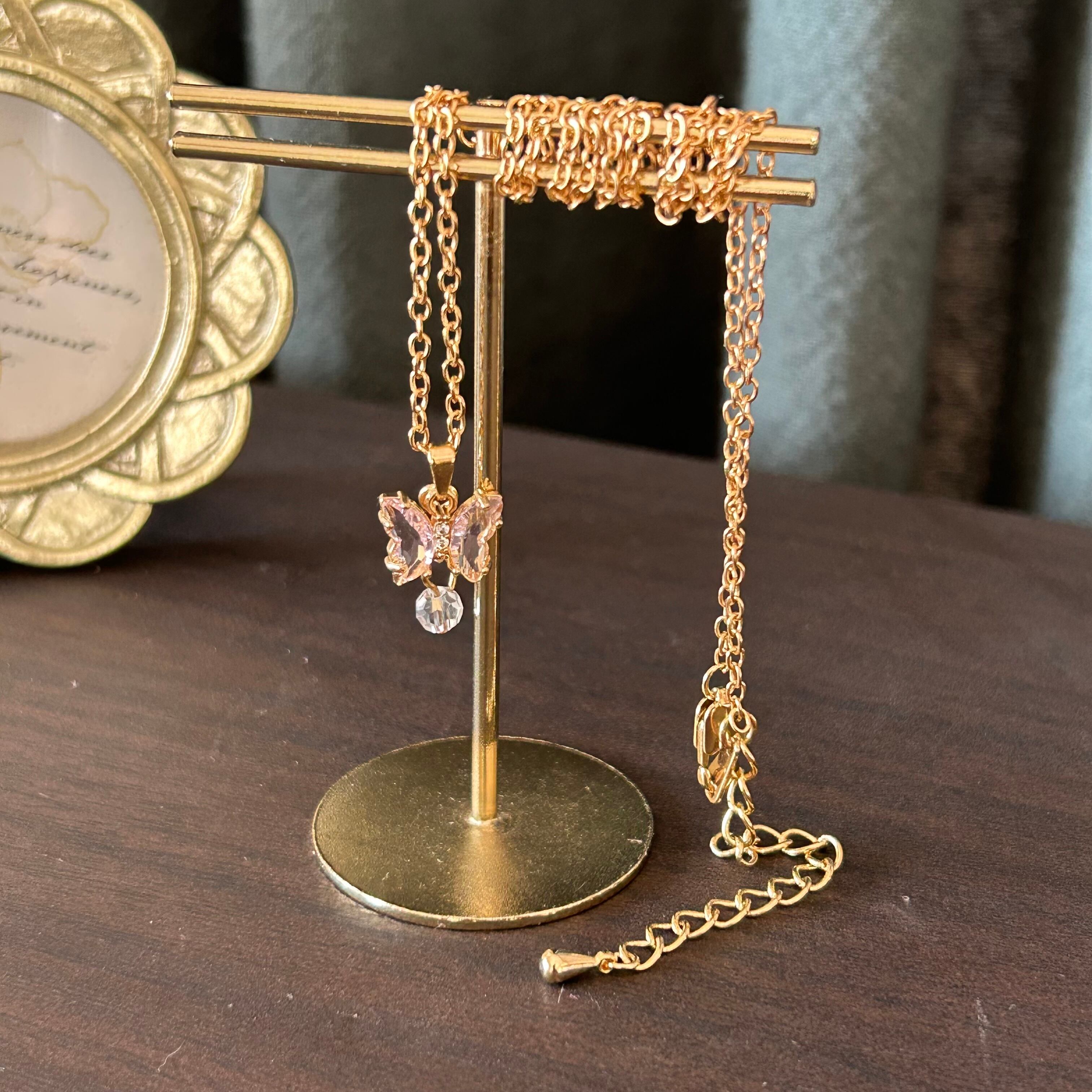クリアなピンクの蝶々が大人っぽいネックレスです。