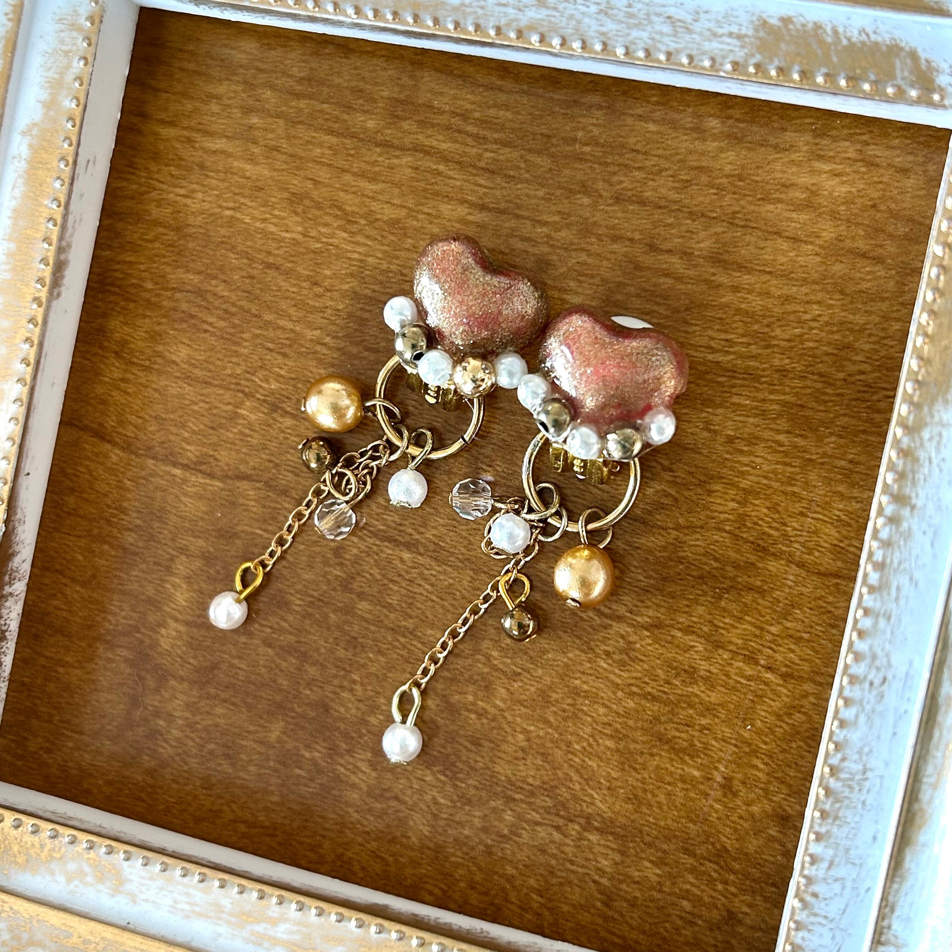 マットゴールドのハートにパールを添えて。
