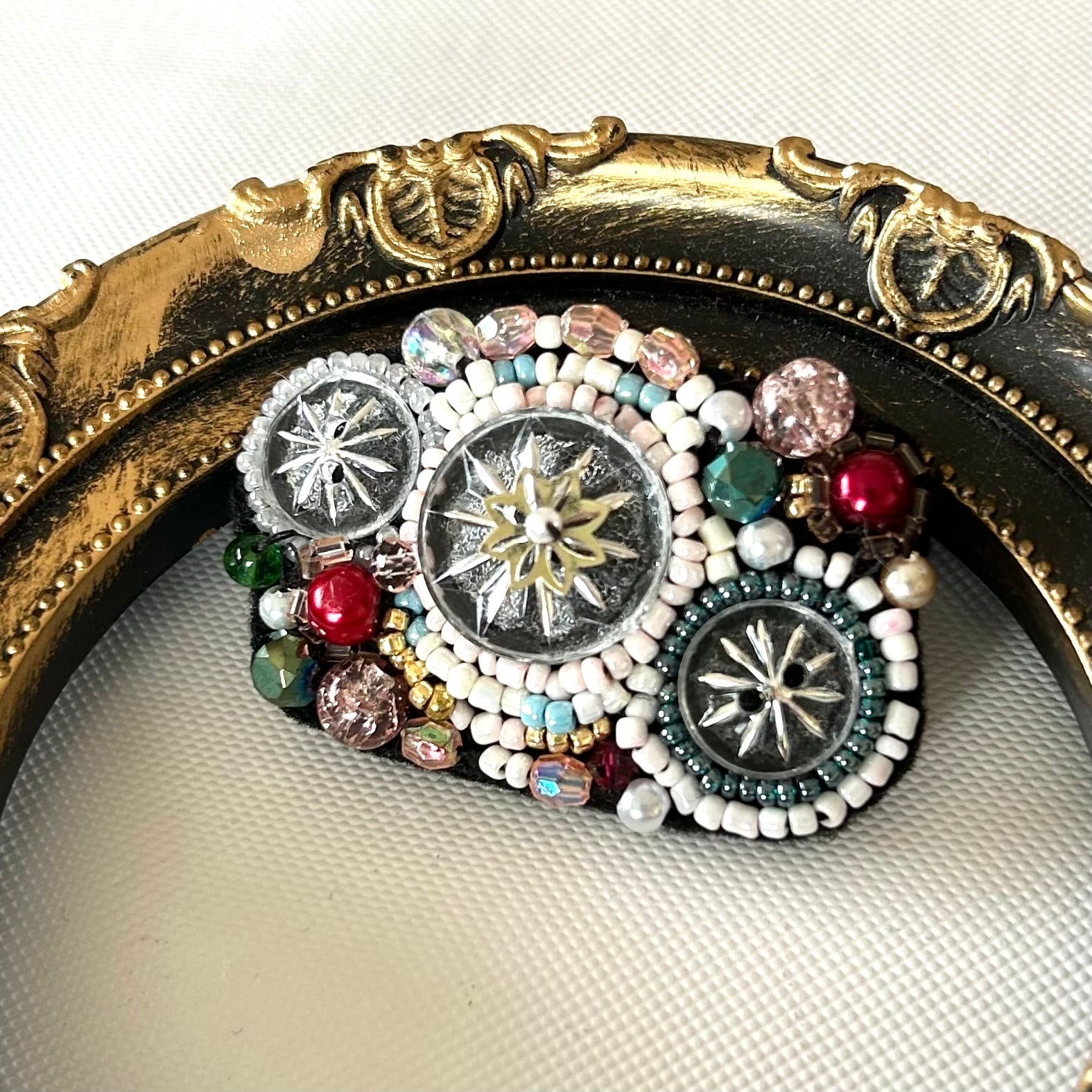 パールや沢山のビーズを飾ったアンティークなデザインです。