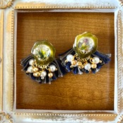 フリンジとパールなどを添えて華やかな耳飾りです。