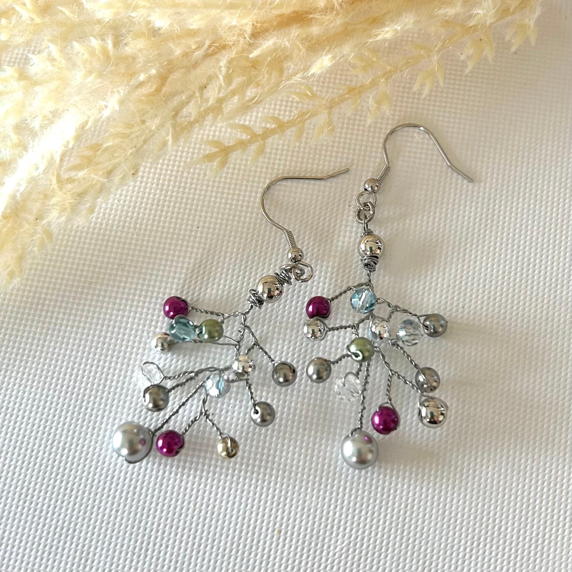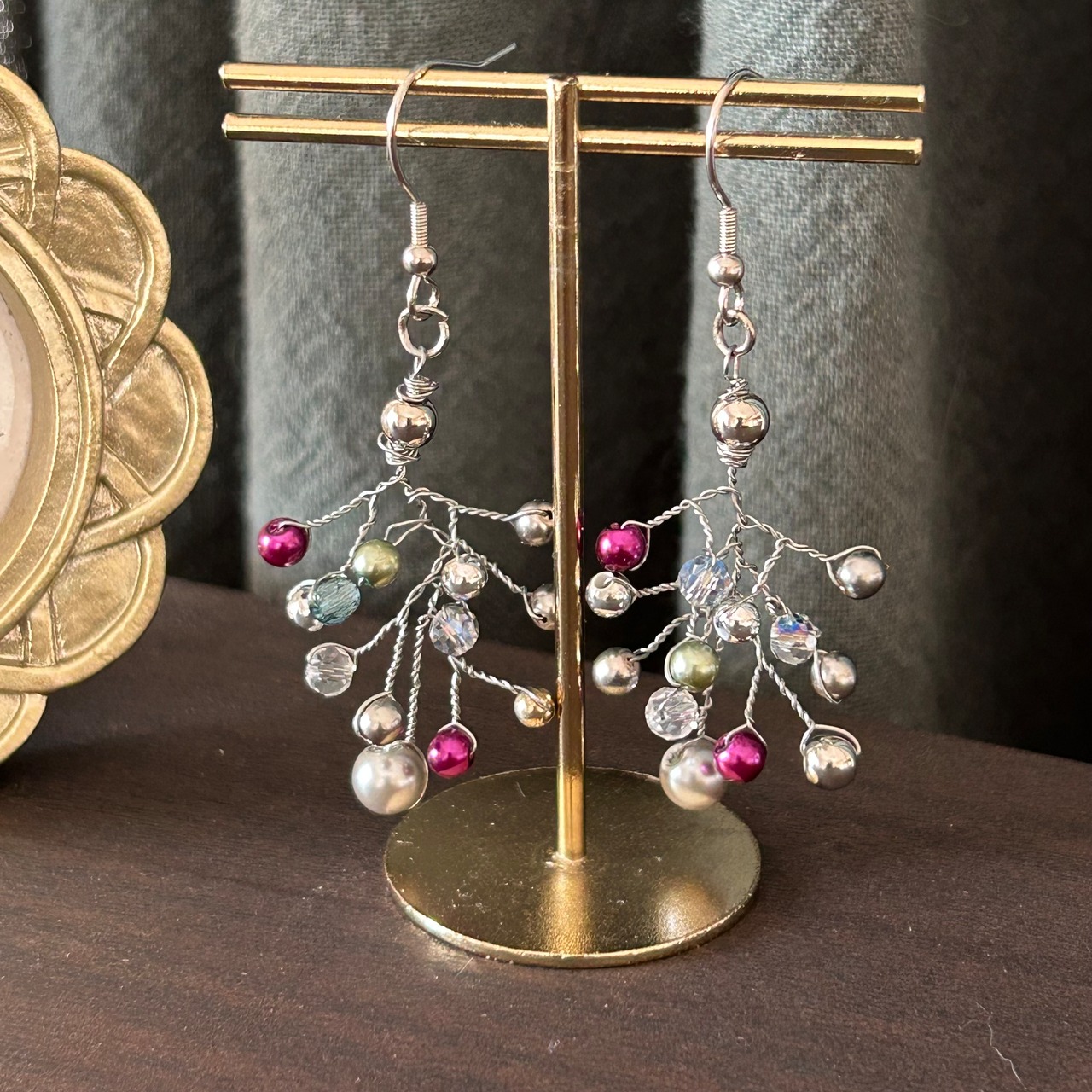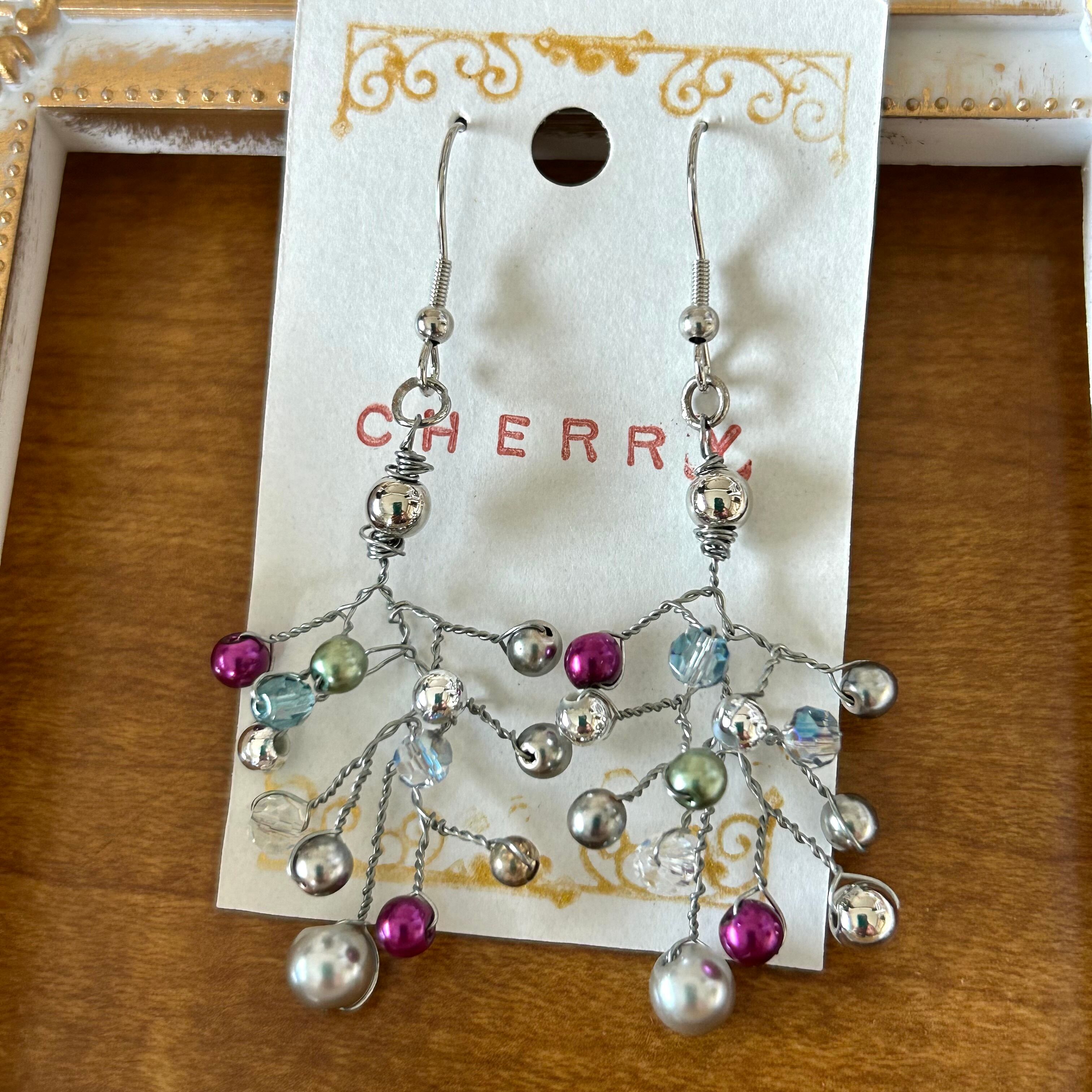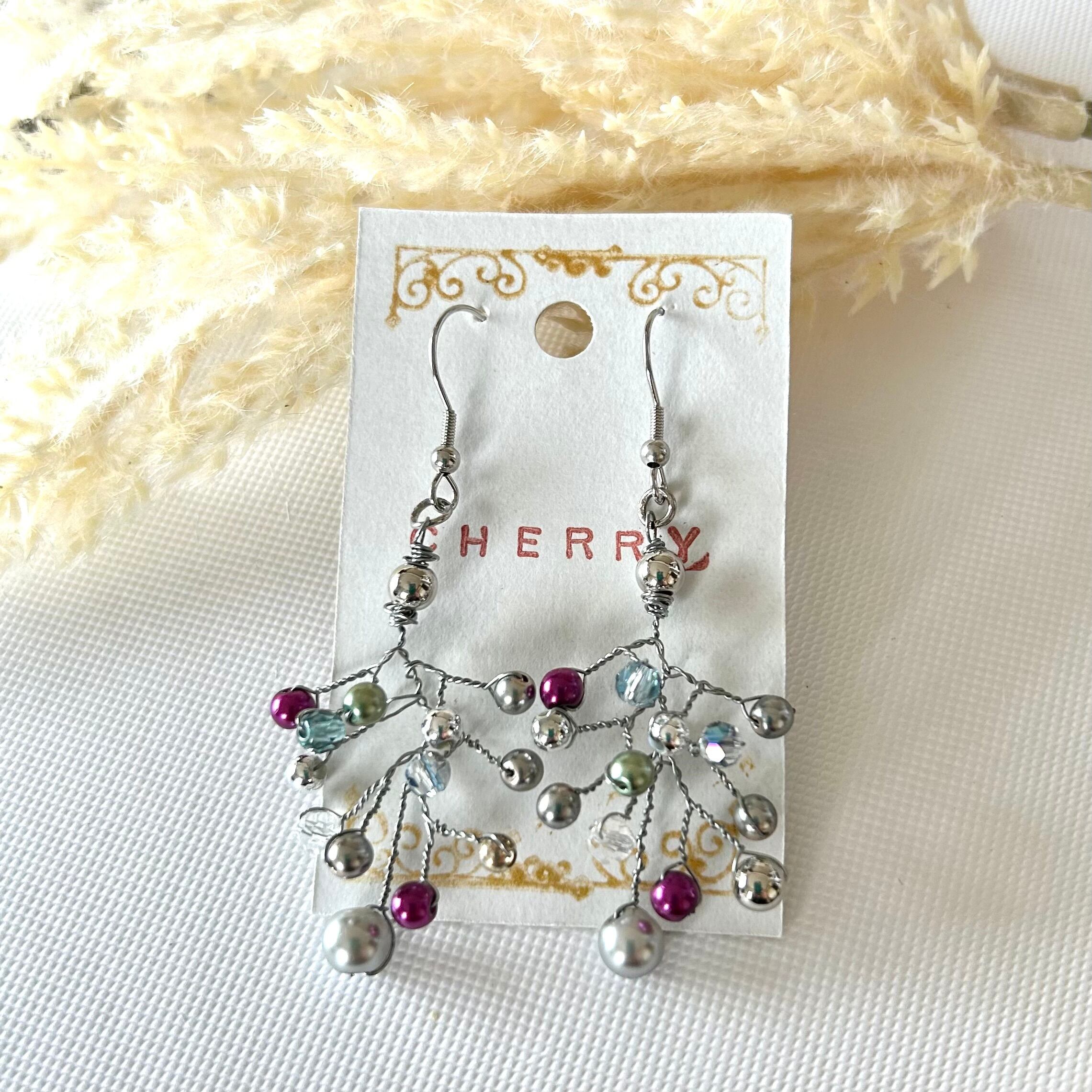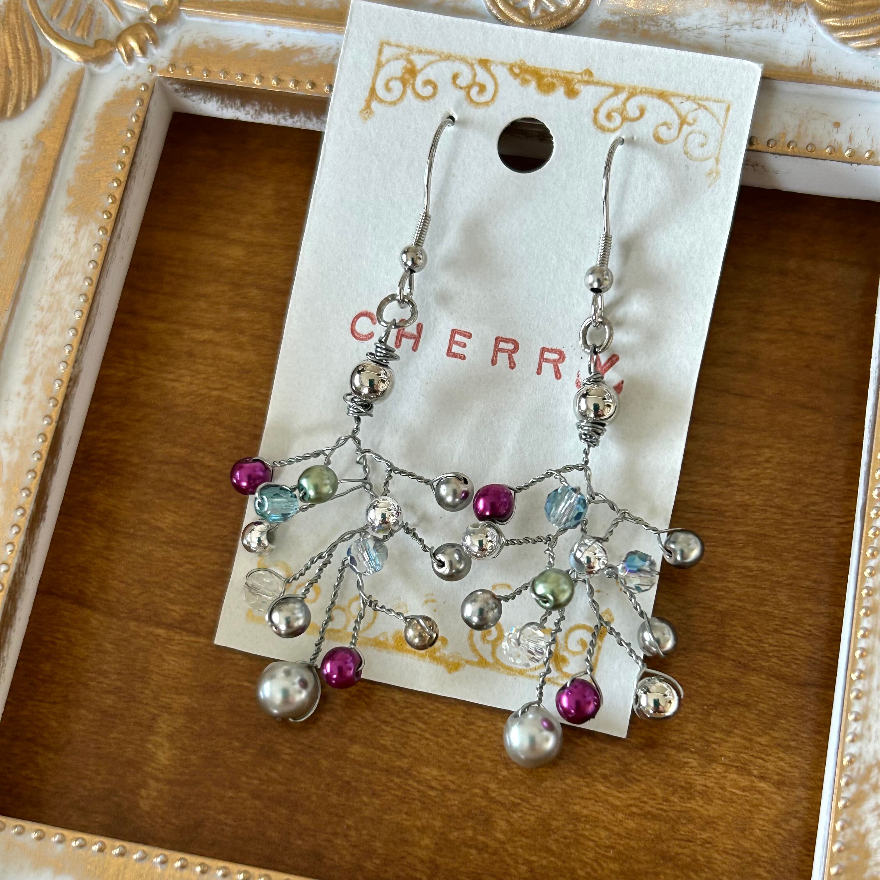 シルバーにピンクやグリーンのパールが踊るピアスです。