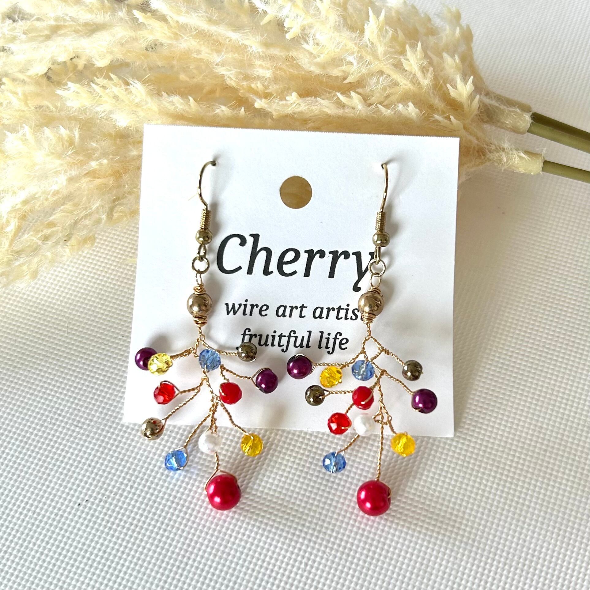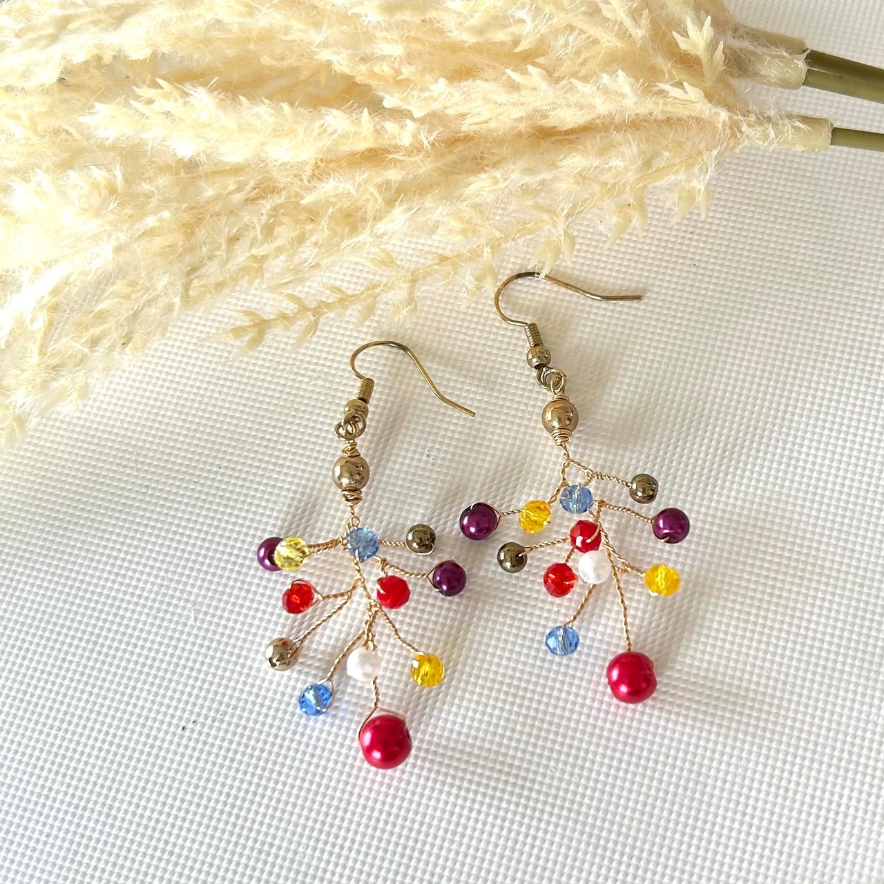 ワイヤーで作った木の様なモチーフにビーズが実りました!