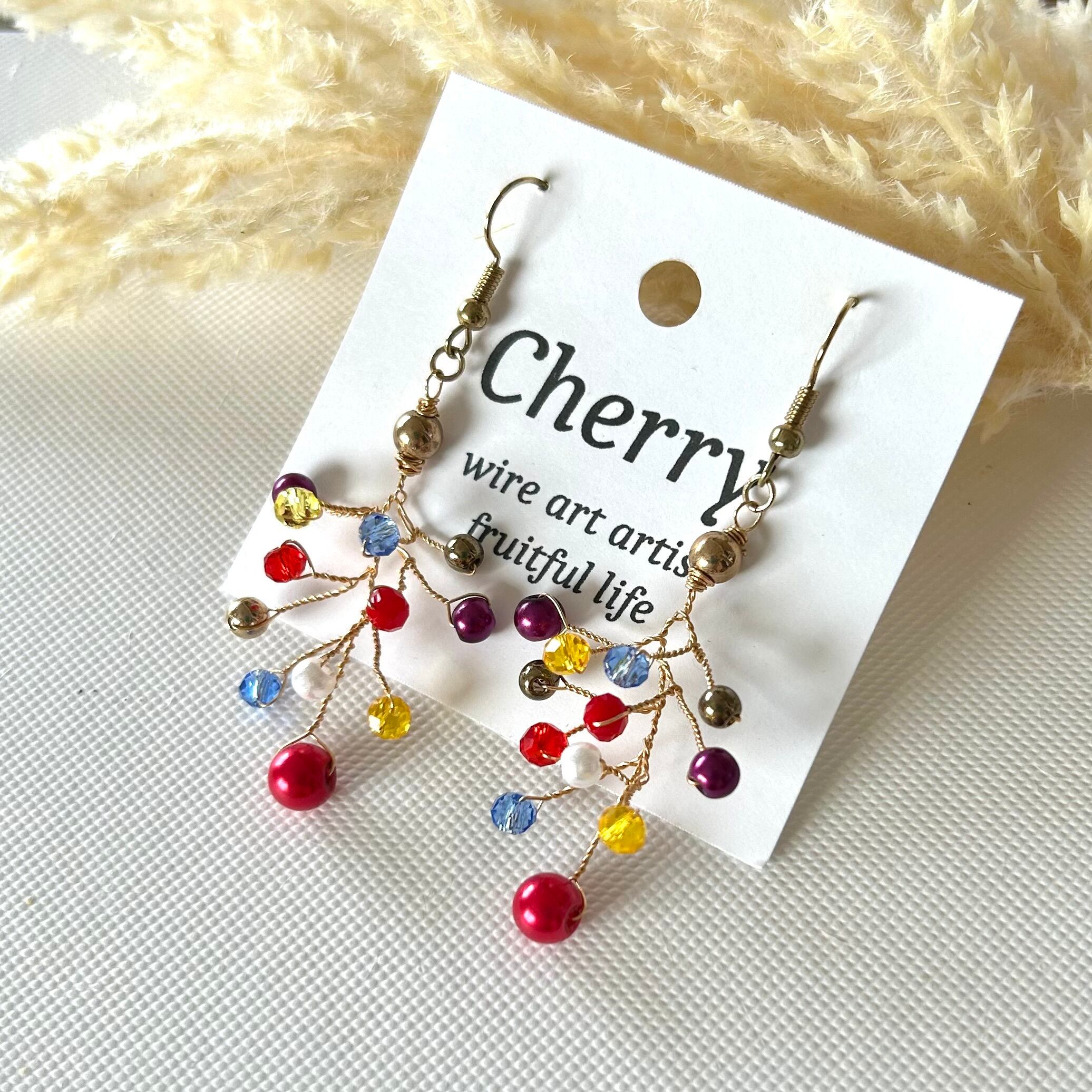 チェリー ボンボン カラフル ピアス