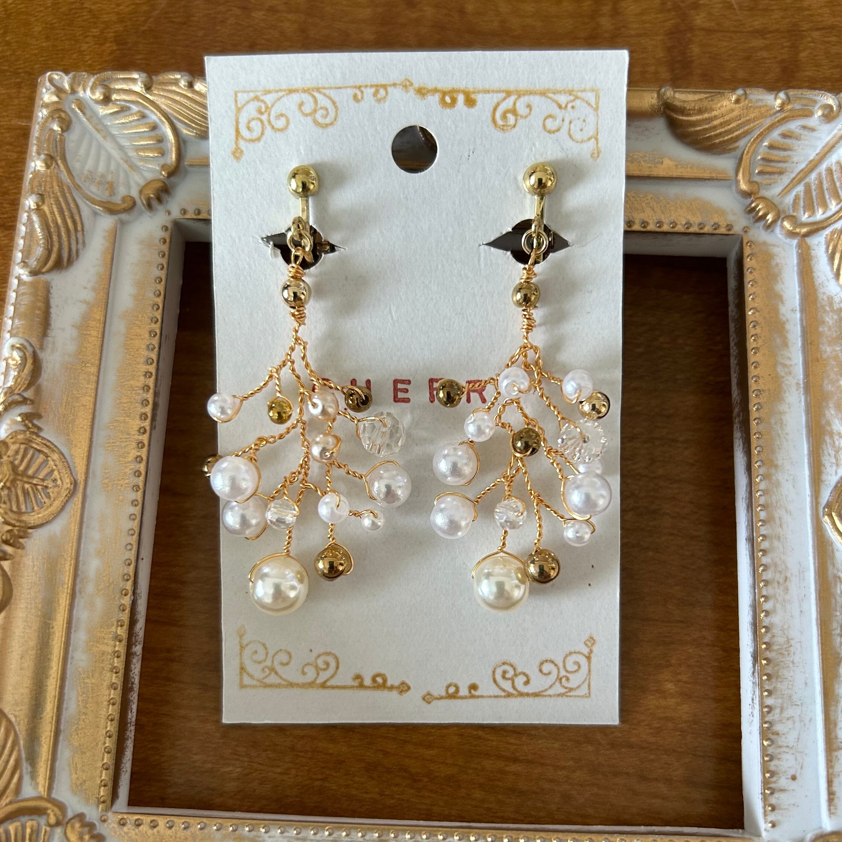 ワイヤーで作った木の様なモチーフにパールビーズが実りました!