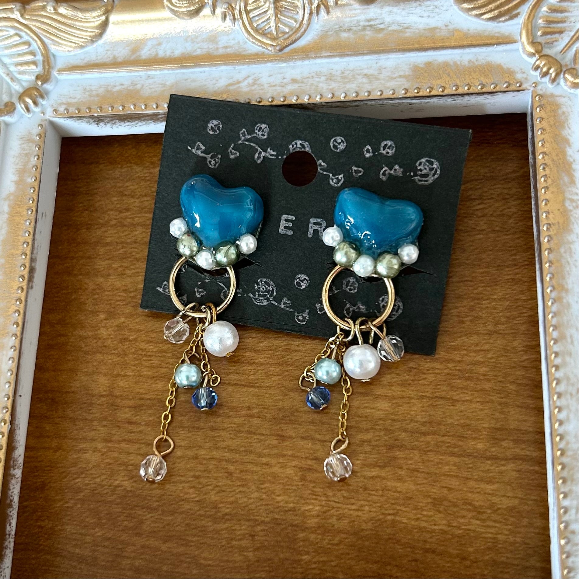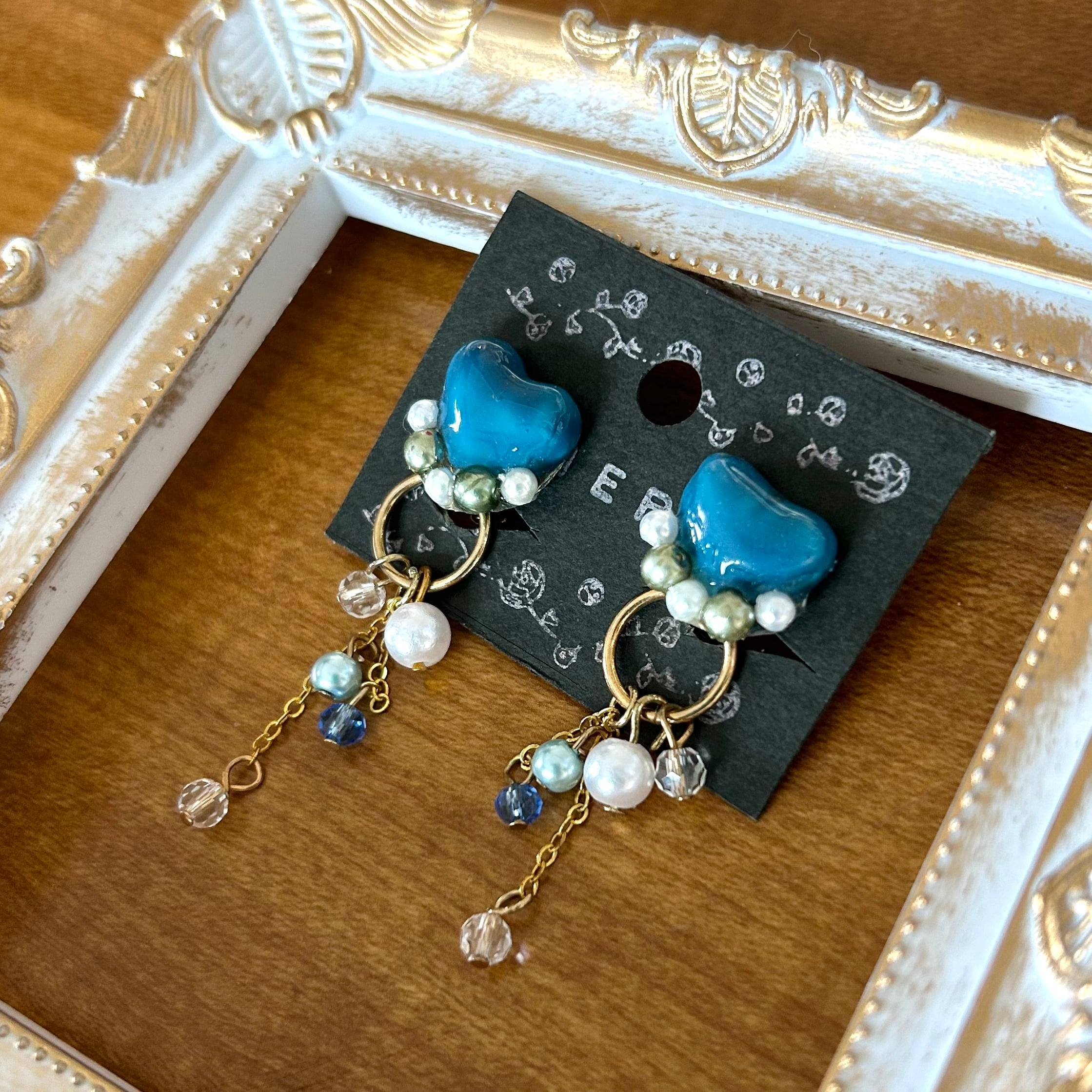 ブルーのハートにパールを添えて。