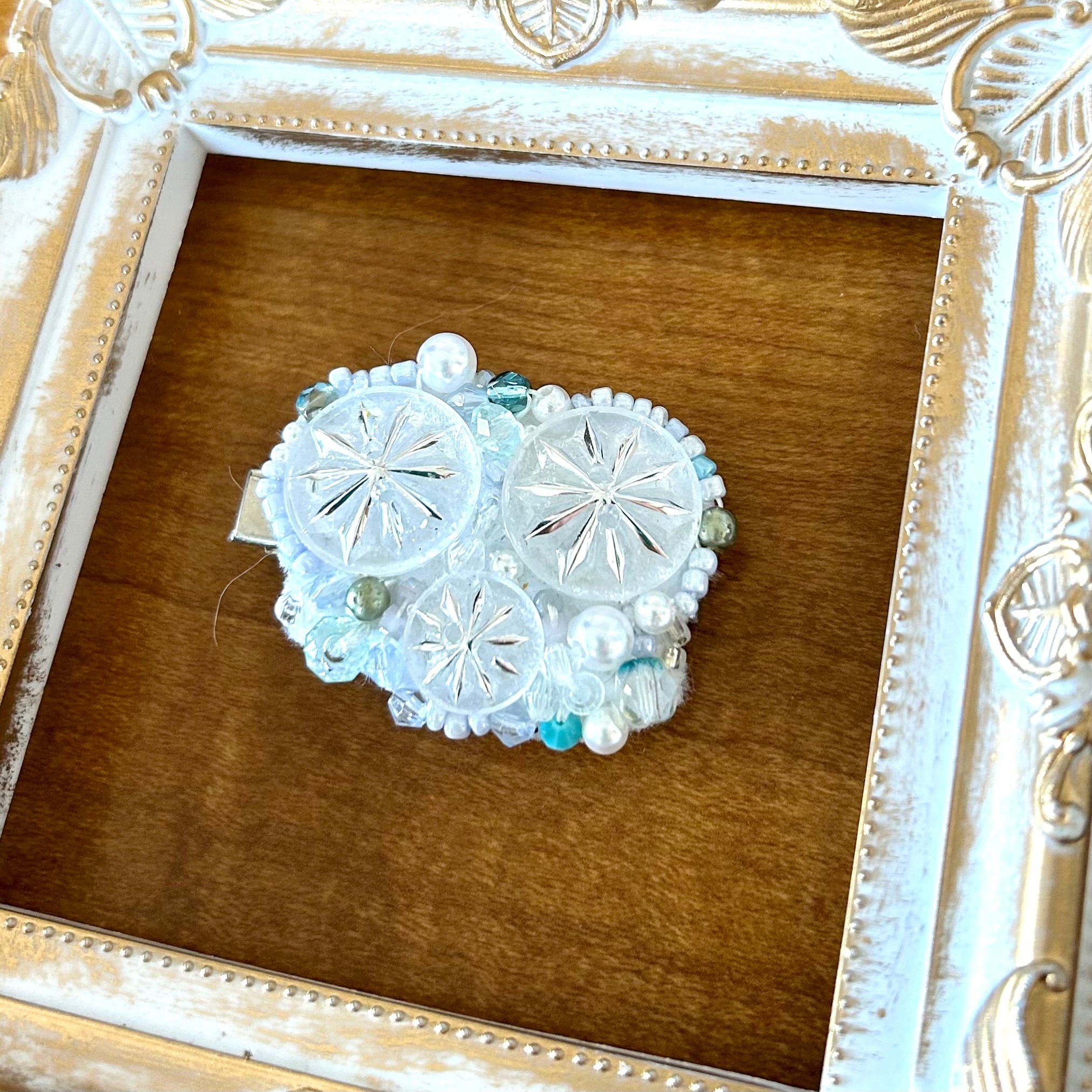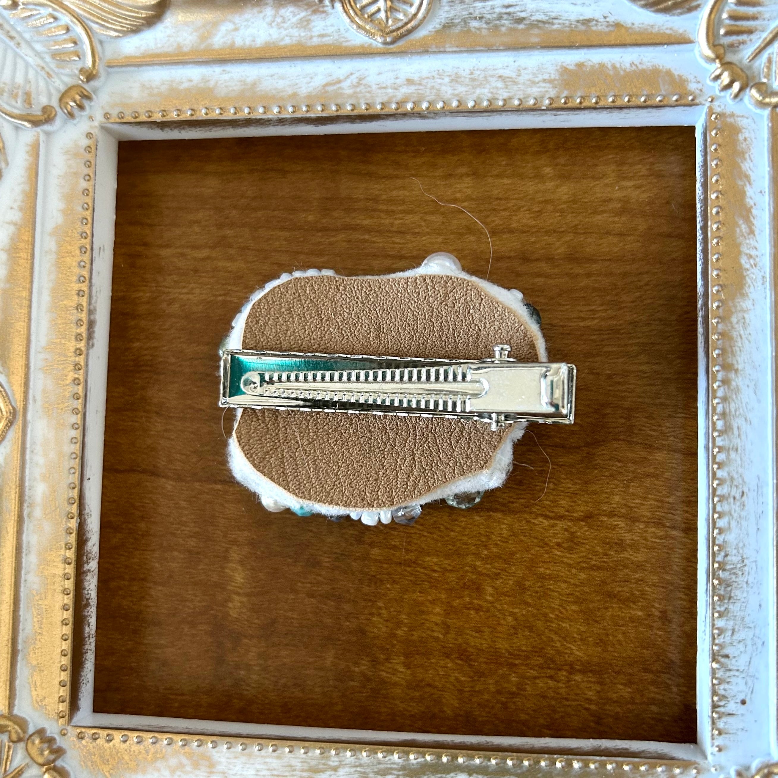 丸モチーフが3個並んで可愛いヘアクリップです。