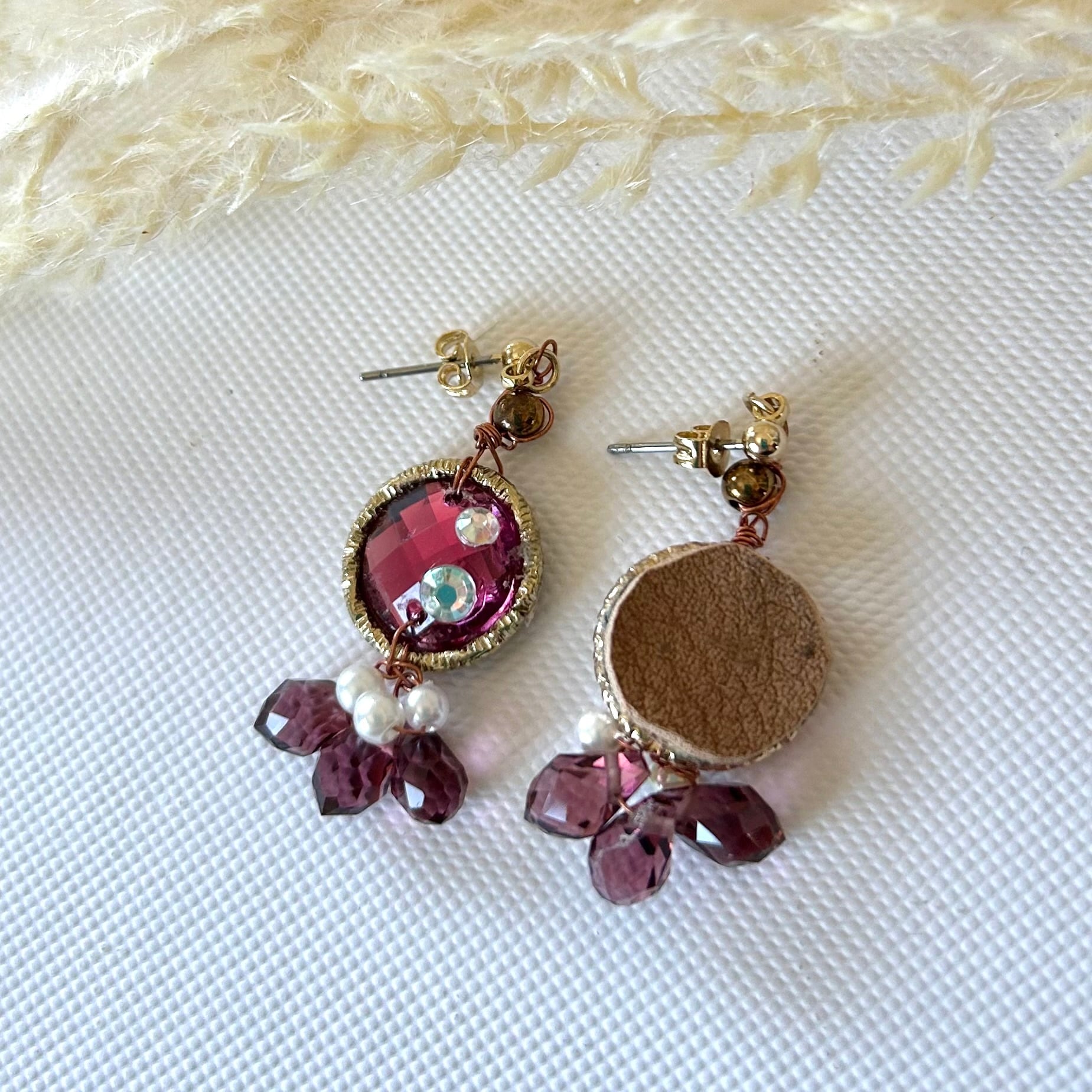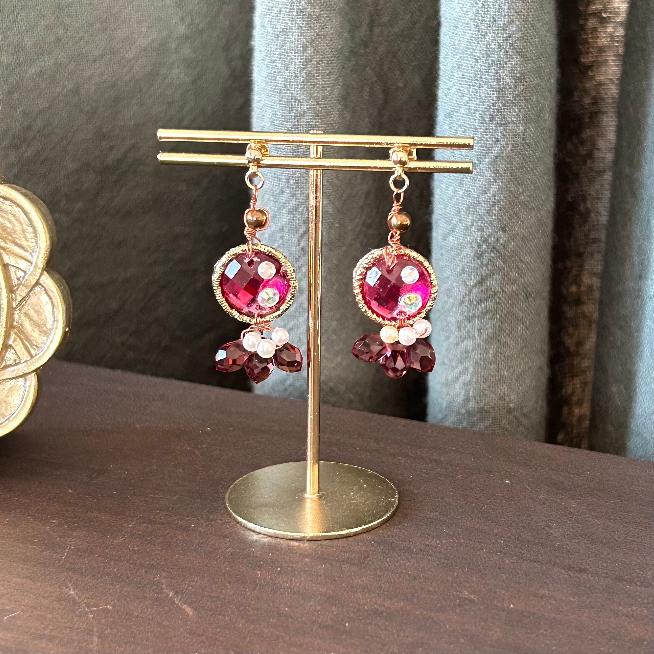 丸モチーフの下にしずくビーズかま透明感があり輝って綺麗なピアスです。
