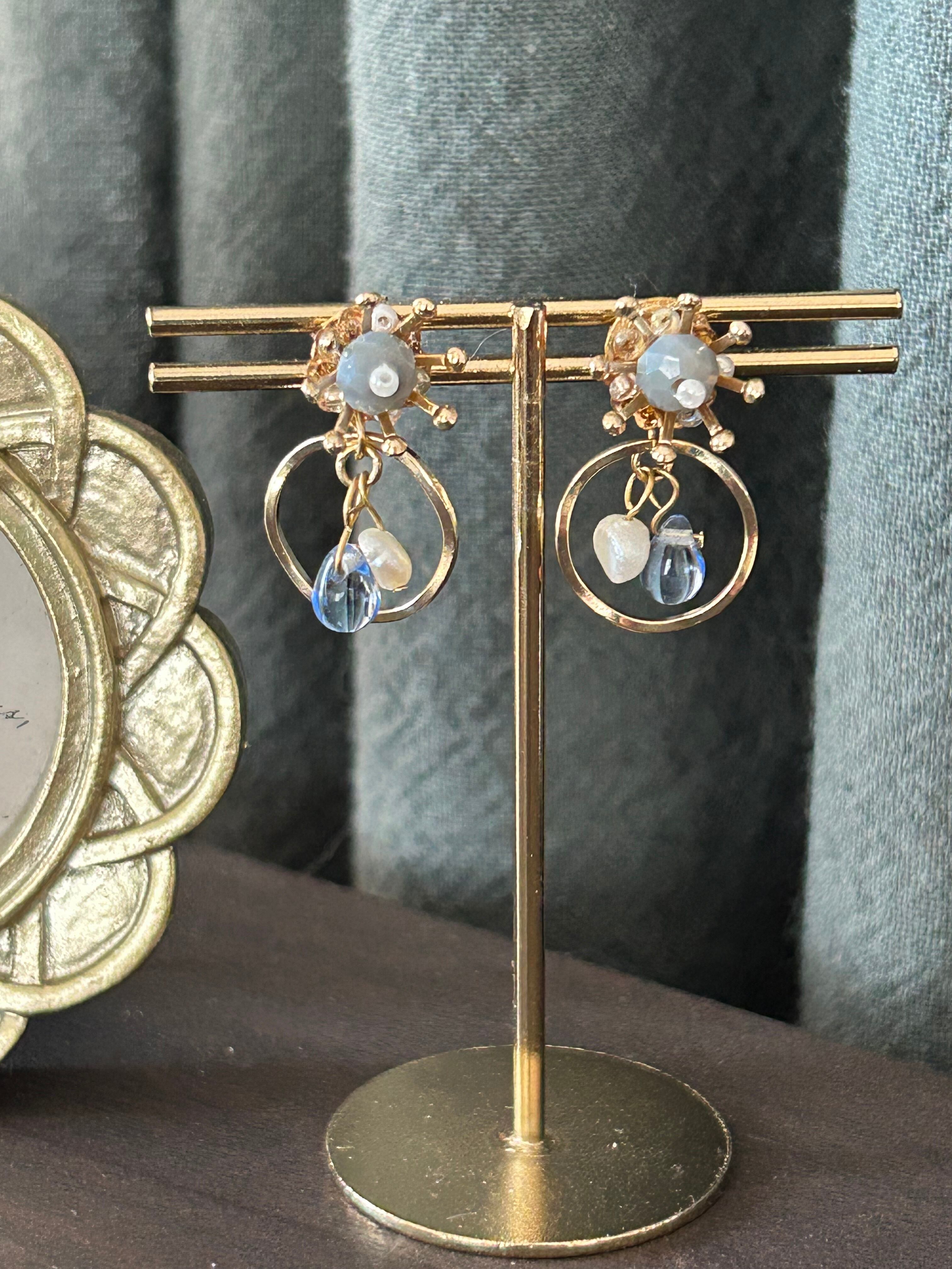 淡水パールと、透明感のある雫ビーズもぶら下げました。