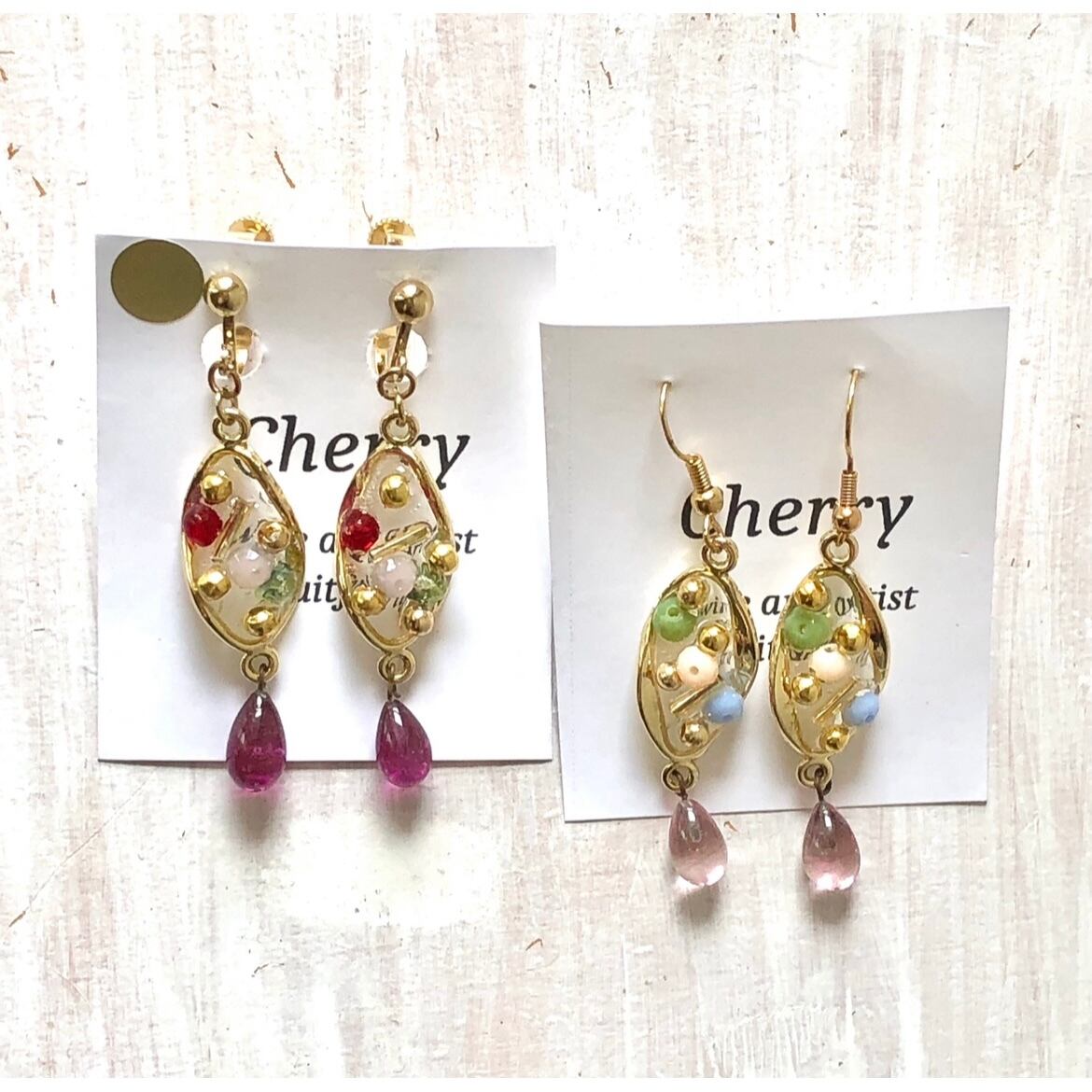 マゼンダピンクのしずくをぶら下げで可愛い雰囲気です。